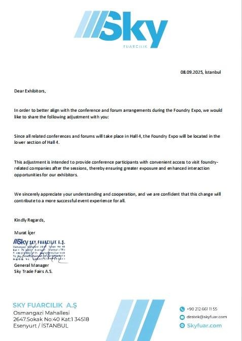 La Exposición de Fundición de Turquía 2025 se celebrará con gran éxito en el Centro Internacional de Exposiciones de Estambul del 24 al 27 de septiembre de 2025. Llevamos mucho tiempo esperando su visita a este evento clave del sector, donde podremos explorar conjuntamente tecnologías de vanguardia y tendencias de desarrollo en el sector de la fundición.